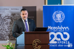 Στην εισαγωγική του τοποθέτηση, ο Δήμαρχος παρουσίασε το συνολικό πλαίσιο των επετειακών δράσεων, αναδεικνύοντας το ιδιαίτερο βάρος που αυτές φέρουν για την Ιερή Πόλη του Μεσολογγίου. Έμφαση δόθηκε τόσο στη συμβολική διάσταση της Εξόδου όσο και στη σύγχρονη προοπτική της ιστορικής μνήμης.