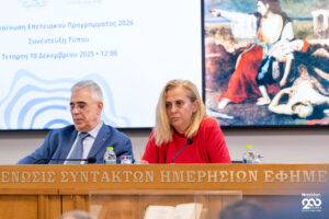 Ακολούθησε ο χαιρετισμός της Προέδρου της ΕΣΗΕΑ, κ. Μαρίας Αντωνιάδου, η οποία παρουσίασε τη νέα συλλεκτική βιβλιοφιλική έκδοση των «Ελευθέρων Πολιορκημένων» του Διονύσιου Σολωμού και αναφέρθηκε στη συμβολή της Ένωσης στις επετειακές πρωτοβουλίες.Στη συνέχεια, ο Λευτέρης Σκιαδάς, μέλος του Μορφωτικού Ιδρύματος της ΕΣΗΕΑ, αναφέρθηκε στον ρόλο της Ένωσης στη διάδοση του ιστορικού μηνύματος της Εξόδου, υπογραμμίζοντας τη σημασία της δημοσιογραφικής κοινότητας στη διαχρονική ανάδειξη του γεγονότος.