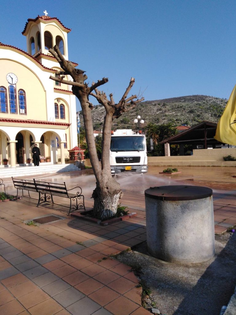 Συνεχίσθηκαν σήμερα στο Κεφαλόβρυσο, την Σταμνά, την παραλία Σταμνάς, το Χρυσοβέργι και τα Φραγκουλέικα, οι απολυμάνσεις που πραγματοποιεί ο Δήμος Ι.Π. Μεσολογγίου. Παράλληλα, απολύμανση έγινε και στο Φαράγγι της Κλεισούρας, στους χώρους στάθμευσης αυτοκινήτων του προαύλιου χώρου της Αγίας Ελεούσας.