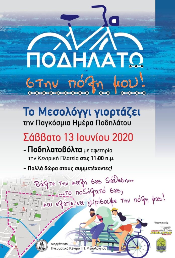 Ο Δήμος Ι.Π. Μεσολογγίου και το Πνευματικό Κέντρο, σας προσκαλούν αύριο Σάββατο 13 Ιουνίου στην διοργάνωση της Ποδηλατοβόλτας η οποία είχε αναβληθεί λόγω καιρικών συνθηκών.